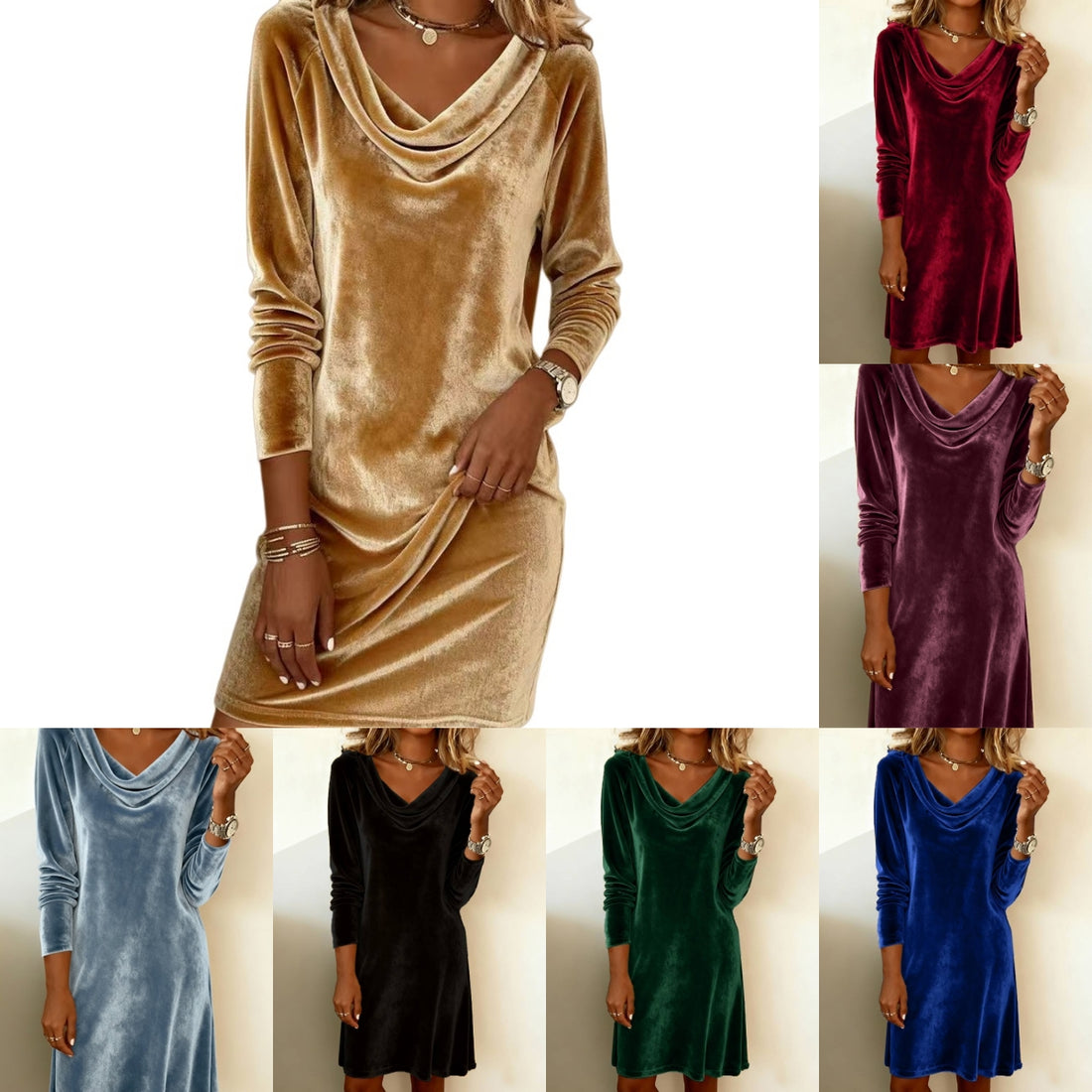 Elegant Solid Color Swing Collar Long Sleeved Velvet Dress Temperament Gentle Skirts For Women Cocktail Party Formal Dresses